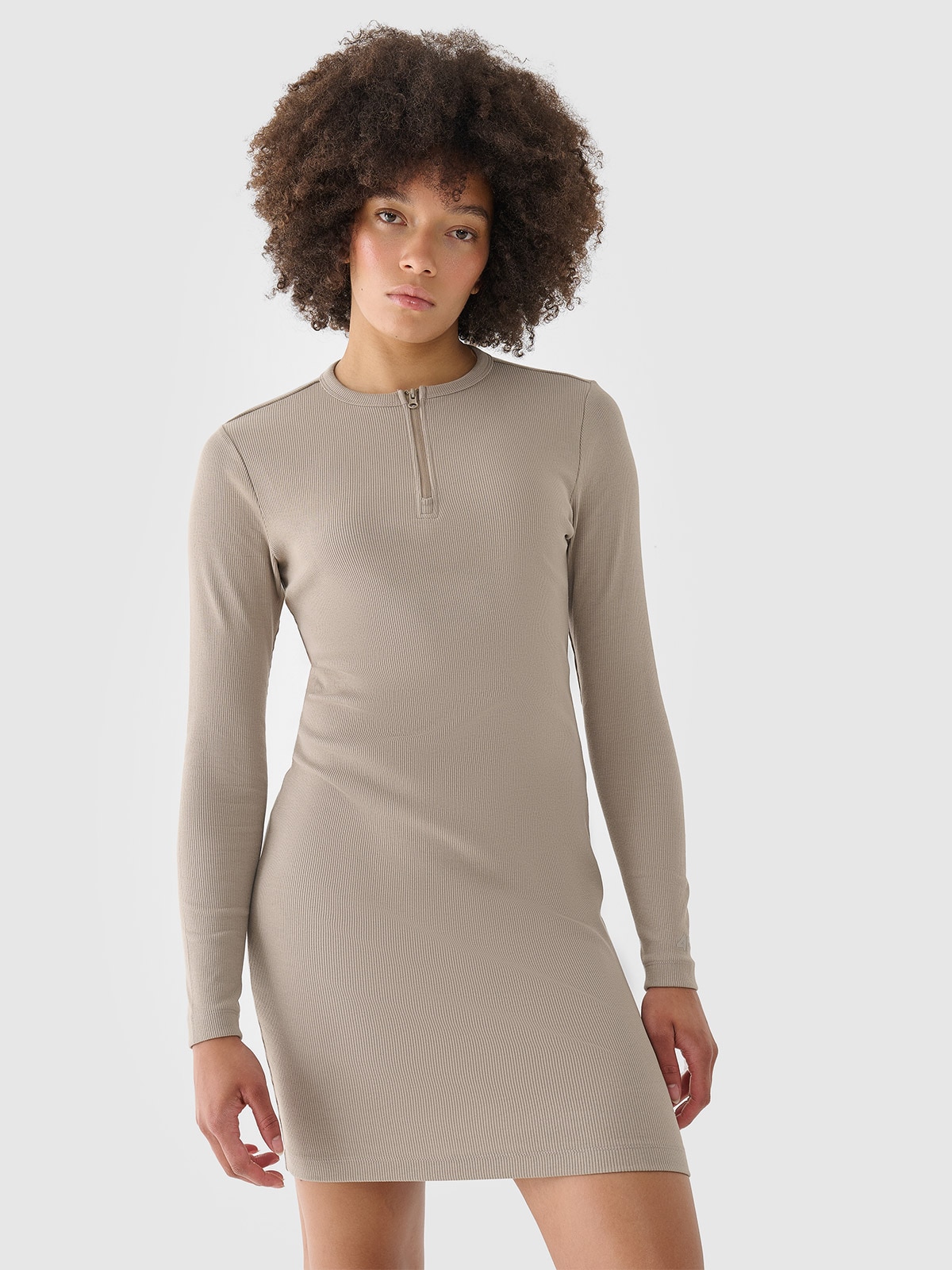 4F Sukienka midi z prążkowanej dzianiny damska – beżowa M