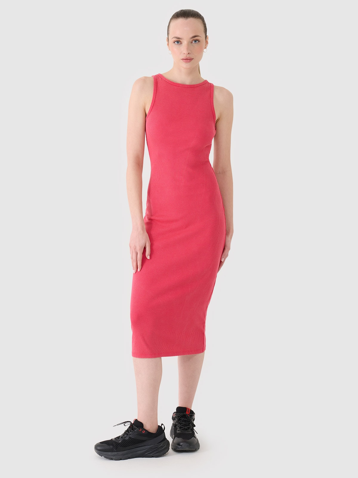 4F Sukienka z prążkowanej dzianiny damska – różowa M