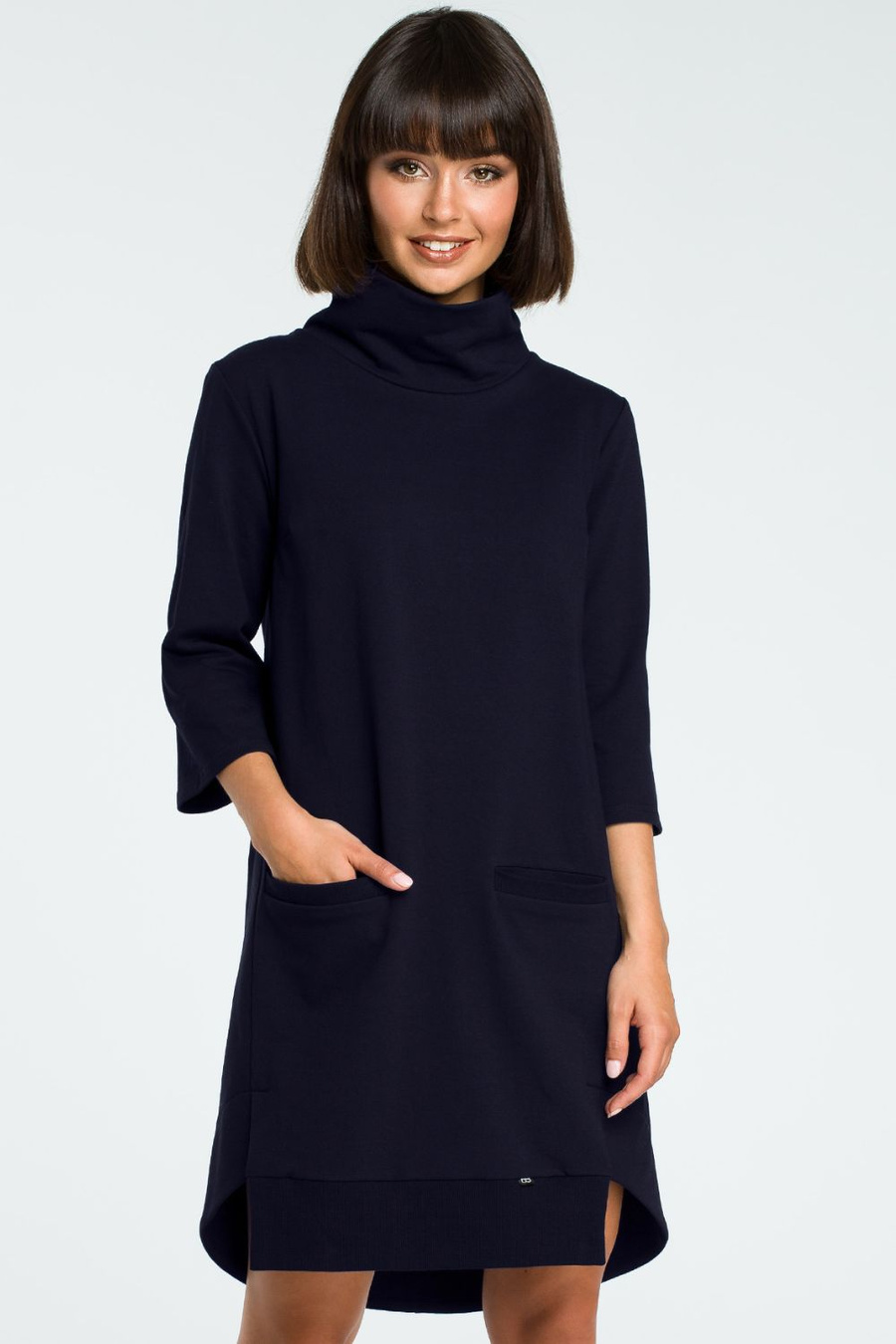 Trapezowa sukienka dresowa z golfem i długim rękawem granatowa