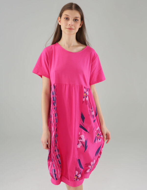 Wzorzysta sukienka z bawełny – kolor n/a – 109-2049B FUXIA